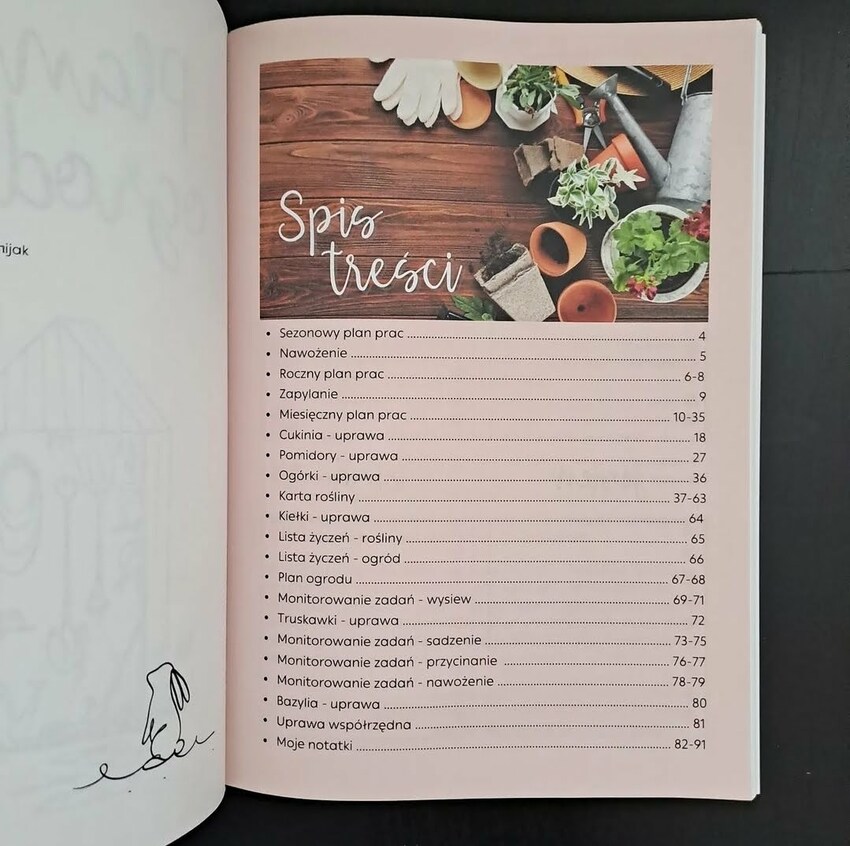 Idealny do uporządkowania zadań w ogrodzie. Oprócz miejsca na własne zapiski i plany dotyczące upraw i dbania o roślinny, w plannerze znajdziecie garść różnych niezbędnych tematycznych informacji.
