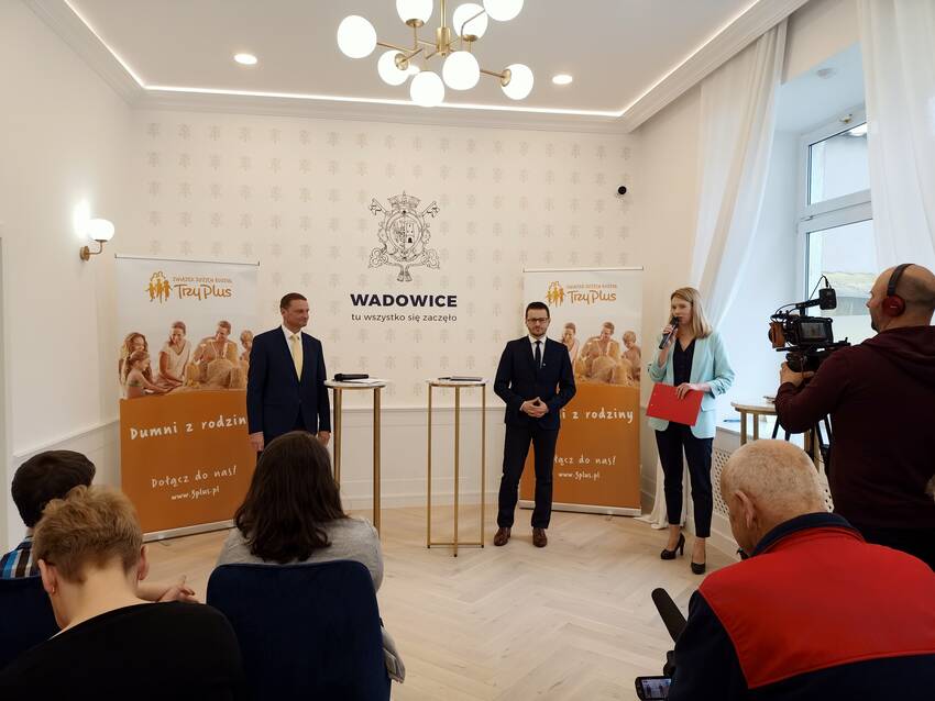 W środę 6 kwietnia br. podczas konferencji prasowej w Urzędzie Miejskim w Wadowicach zostało podpisane porozumienie między organizatorem - Związkiem Dużych Rodzin „Trzy Plus” a tegorocznym gospodarzem jubileuszowego Zjazdu Dużych Rodzin, czyli Gminą Wadowice. Podpisy pod dokumentem złożyli: Radosław Waszkiewicz i Andrzej Wach, kolejno prezes i wiceprezes Zarządu Związku Dużych Rodzin oraz Bartosz Kaliński Burmistrz Wadowic.