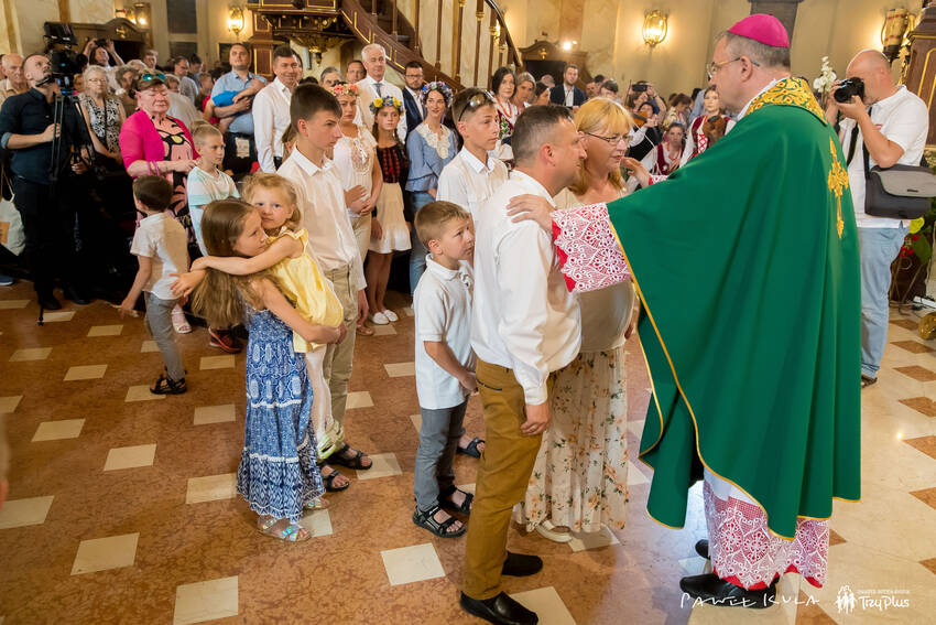 Uczestnicy Zjazdu chętnie zwiedzali Muzeum Dom Rodzinny Ojca Świętego Jana Pawła II - tam każdy, od najmłodszego do najstarszego, mógł poczuć żywą obecność Jana Pawła II i zapoznać się z życiem Karola Wojtyły - Jana Pawła II, który mottem swojego pontyfikatu uczynił słowa „Nie lękajcie się!”. W Muzeum dostępne były ścieżki edukacyjne dla rodzin i dzieci, a także audio przewodniki w języku ukraińskim, dzięki którym nasi goście również mieli okazję poznać historię życia największego Polaka. Rodziny ukraińskie uczestniczyły zresztą we wszystkich punktach programu Zjazdu. Korzystały z pomocy tłumacza, mogły też skorzystać z porady prawnej. Ale przede wszystkim poczuły się częścią wspólnoty rodzin, których nie podzieliły ani kwestia przynależności kulturowej czy religijnej, ani bariera językowa. Widoczne było to przede wszystkim podczas dwóch punktów Zjazdu. Pierwszym z nich był sobotni koncert na rynku przed Bazyliką, gdzie muzyka Joszko Brody z dziećmi i zespołu „Czeremszyna” podkreśliła z jednej strony naszą różnorodność, z drugiej wspólne korzenie czy doświadczenia. Spontaniczny taniec uczestników stał się tego najlepszym dowodem.