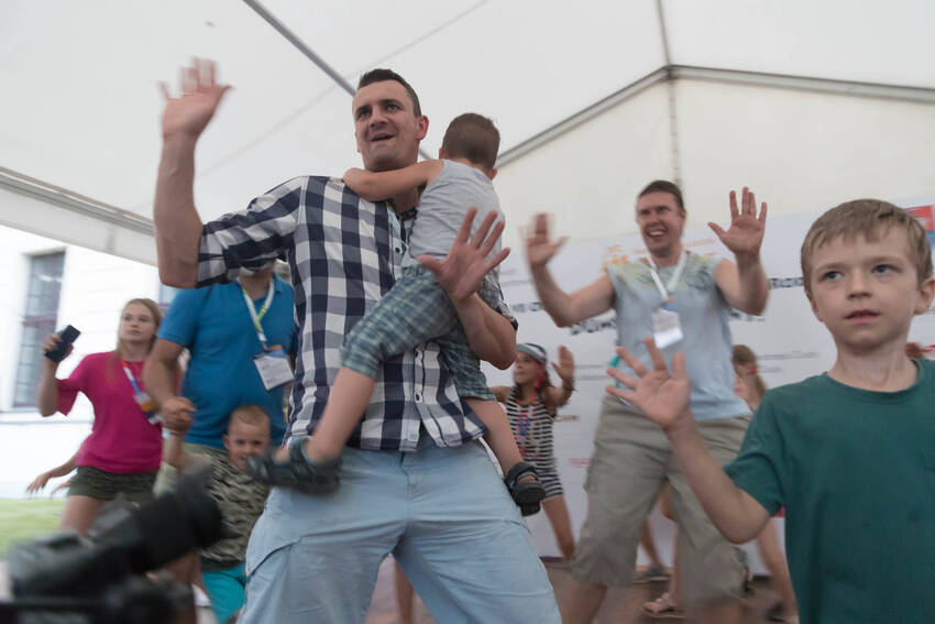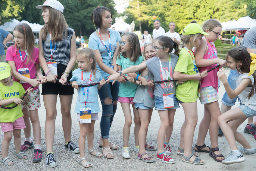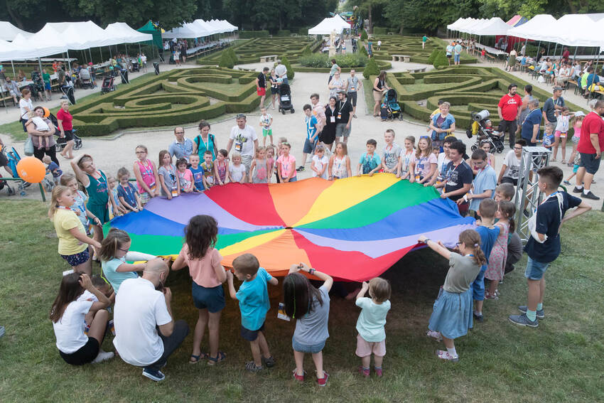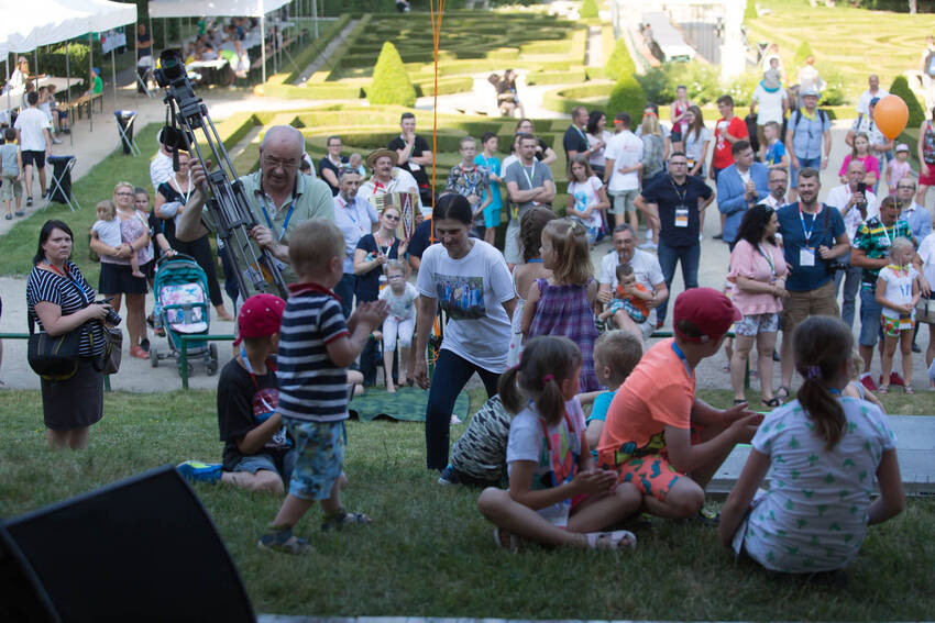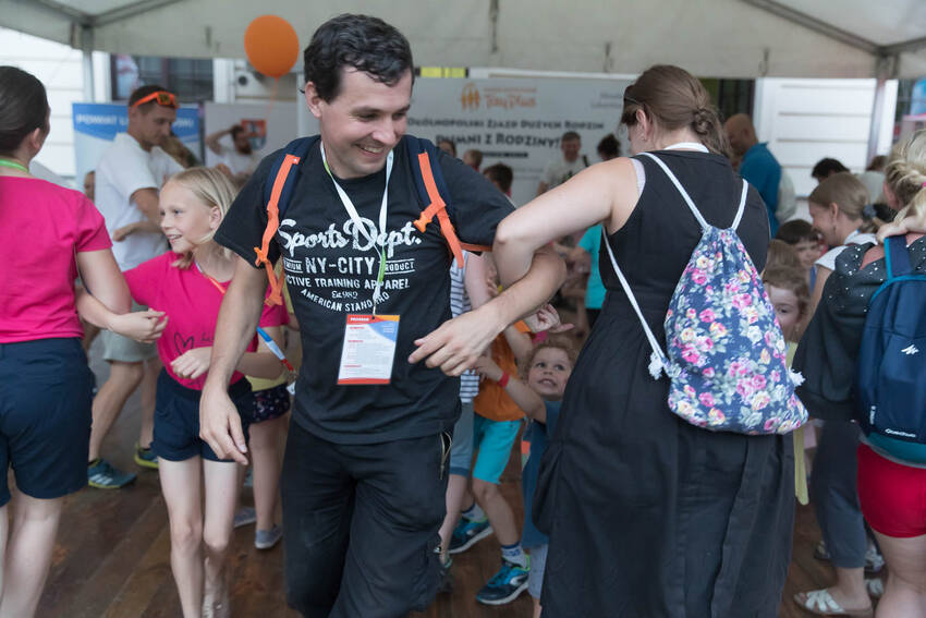 Nasz fotograf Paweł Kula przemierzył podczas Zjazdu Dużych Rodzin w Lubartowie setki kilometrów z profesjonalnymi aparatami, obiektywami i prawdziwą torbą fotografa-obieżyświata na ramieniu. Dotarł do wszystkich najważniejszych i tych mniej ważnych, ale sympatycznych momentów Zjazdu. Właściwie to obfotografował nam cały VII Zjazd Dużych Rodzin w Lubartowie: wielkie przygotowania, pakowanie pakietów, szykowanie recepcji, ustalanie warsztatów, świetnie zorganizowanych wolontariuszy, powitania uczestników, spotkania znajomych, oficjalne otwarcie Zjazdu i prawie wszystkie jego atrakcje. Ze zdjęć od razu widać, jak gorące było przyjęcie w Lubartowie, jak świetnie bawiliśmy się na pikniku w pałacowych ogrodach: były tańce, konkursy, występy i ... przepyszne pierogi, którymi Gospodarze uraczyli nas pierwszego wieczoru :)